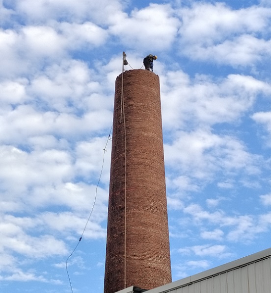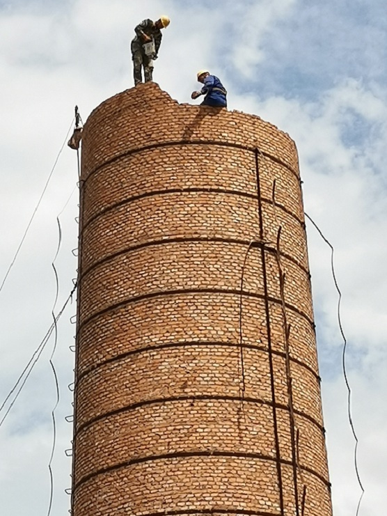3、烟囱拆除前,应仔细检查爬梯腐蚀程度,不安全的地方进行加固,以便施工上下。