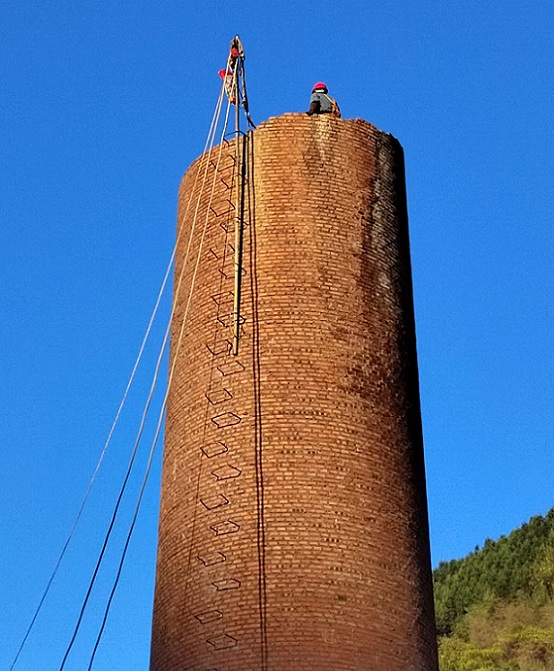 12、进入烟囱内部作业时,应佩带防毒面具等预防缺氧及有害气体侵害的措施,以免操作人员受到不必要的伤害。