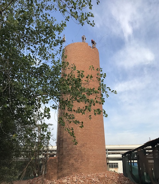 8、烟囱人工拆除施工人员单位区域完工后要求落手清。经检查不留后续隐患,方能离开作业现场。