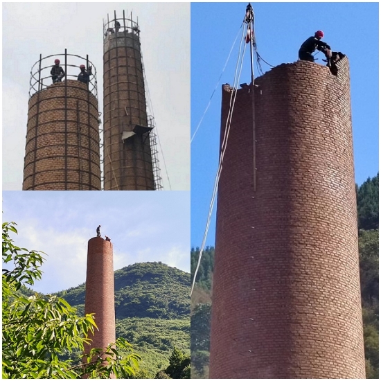 个旧烟囱拆除公司运用“无脚手架、不停产施工、高空悬挂作业”等先进技术为您提供: