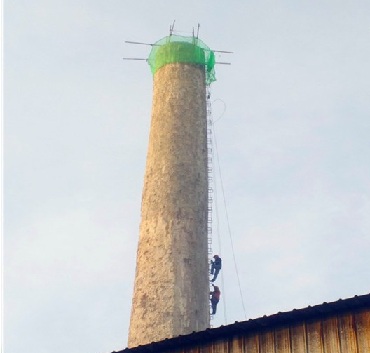 9、拆除工具使用电镐、大锤、凿子等工具,二人一组配合,以此类推往下拆除砖烟囱。