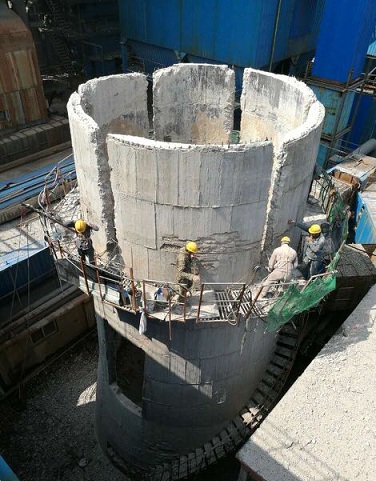 环形贴壁脚手架的用途-烟囱人工拆除的临时脚手架: