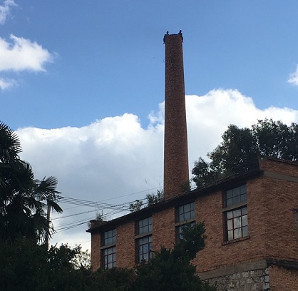 烟囱四周环境狭小。