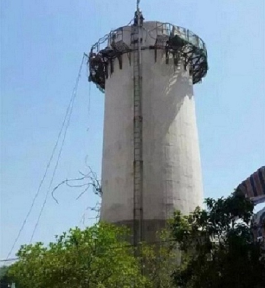 人工拆除45米烟囱最主要的难点就是施工脚手架的搭设,这是该工程安全施工的关键。