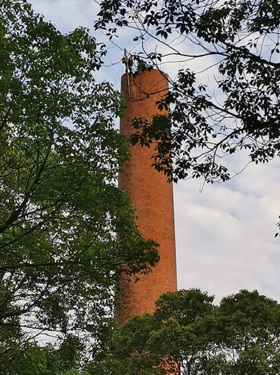 每一步都要慎重,保护周围措施,配合业主顺利拆除烟囱。