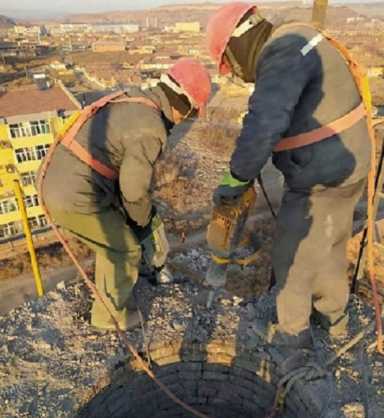 拆除烟囱公司操作方法:采取专业高空攀爬的作业方式登高到烟囱顶部,拆除烟囱公司用专业拆除工具集合大锤等进行简体拆除,所拆砖块要往烟囱内部着落,在拆除时烟囱底部还要做好安全防护措施,预防有拆除的残留砖块或废物高空坠落,具体要在烟囱上搭建一个安全平台,这样可以让不小心坠落的残留砖块或废物掉在安全平台上,从而达到安全拆除的目标。