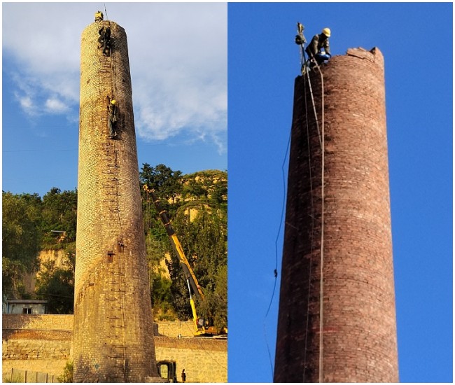 接下来,进行烟囱拆除施工。首先,使用专业设备对烟囱进行支撑加固,确保烟囱拆除过程中不会发生倒塌等意外情况。然后,按照施工方案逐步拆除烟囱,注意保持施工现场的整洁和安全。