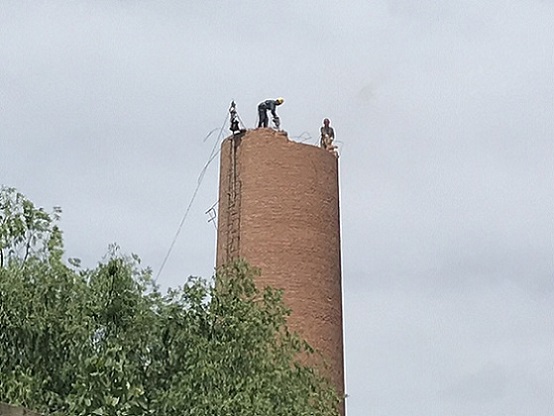 (三)高空工程:烟囱改造、烟囱清灰、烟囱检查、烟囱探伤、烟囱裂缝修补、烟囱加箍加固、烟囱拆除加高、烟囱校正、烟囱更换内衬、烟囱顶口修复、检修或更换避雷设施、烟囱粉刷、轮窑、窑、烟囱抽烟力不够等。