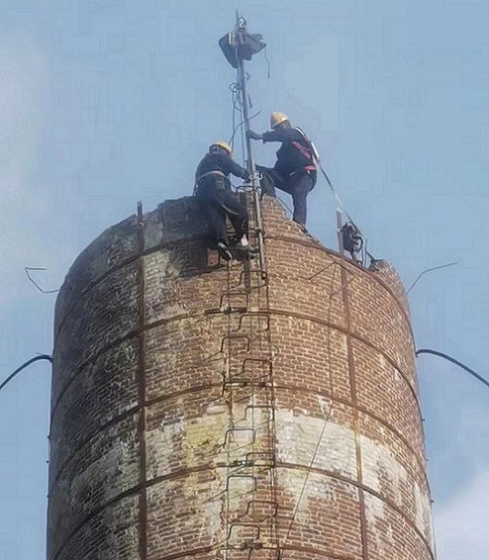 (三)高空工程:烟囱改造、烟囱清灰、烟囱检查、烟囱探伤、烟囱裂缝修补、烟囱加箍加固、烟囱拆除加高、烟囱校正、烟囱更换内衬、烟囱顶口修复、检修或更换避雷设施、烟囱粉刷、轮窑、窑、烟囱抽烟力不够等。