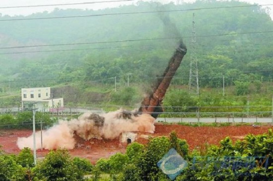 2.拆除烟囱时,应尽量减少灰尘的影响。 手动拆除是利用风从上到下粉碎烟囱,高空时尘埃高。