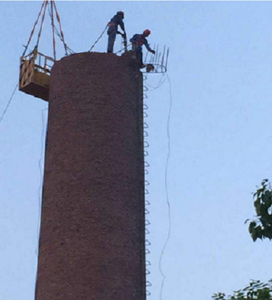 9.拆除前应对烟囱爬梯进行悉数查看,如发现有安全隐患应进行加固办法。