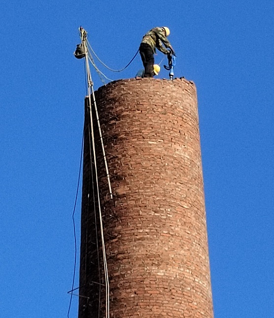 如果有场地,周边空间够安全,采用人工一次性放倒拆除烟囱是最快捷的,最快当天就可以完成拆除作业。