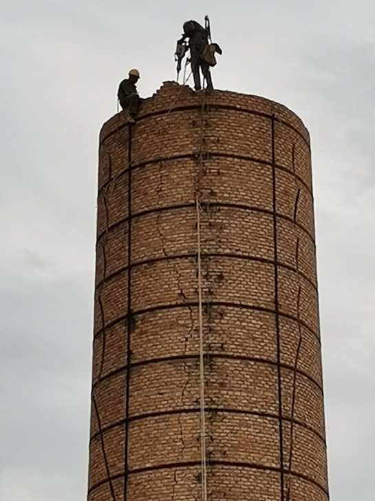 (二)高空维修工程:烟囱改造,烟囱清灰,烟囱检查,烟囱探伤,烟囱裂缝修补,烟囱加箍加固,烟囱碳纤维布加固,烟囱拆除加高,烟囱校正,烟囱更换内衬,烟囱顶口修补,检修或更换避雷设施,烟囱粉刷,轮窑维修、隧道窑维修、烟囱抽烟力