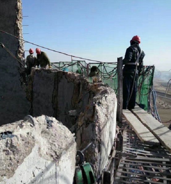 (二)高空拆除工程:各种烟囱拆除、水塔拆除(人工拆除、定向拆除)、铁塔拆除、尿素造粒塔拆除、电视塔拆除、铁截架拆除、高空砼框架拆除、及其它高难度高空拆除工程要有专业人员指挥,拆除时由熟练的作业人员进行拆除。