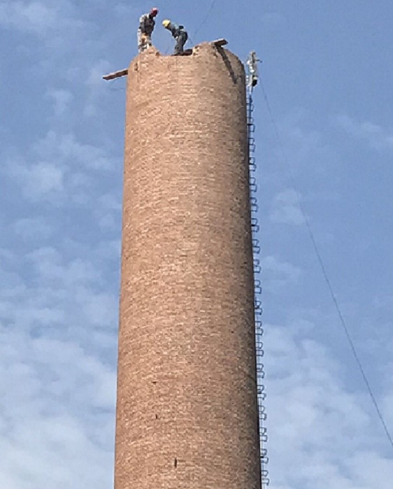 (三)高空工程:烟囱改造、烟囱清灰、烟囱检查、烟囱探伤、烟囱裂缝修补、烟囱加箍加固、烟囱拆除加高、烟囱校正、烟囱更换内衬、烟囱顶口修复、检修或更换避雷设施、烟囱粉刷、轮窑、窑、烟囱抽烟力不够等。