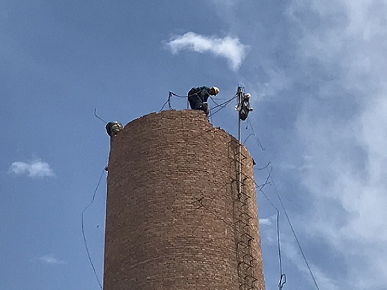 (三)高空工程:烟囱改造、烟囱清灰、烟囱检查、烟囱探伤、烟囱裂缝修补、烟囱加箍加固、烟囱拆除加高、烟囱校正、烟囱更换内衬、烟囱顶口修复、检修或更换避雷设施、烟囱粉刷、轮窑、窑、烟囱抽烟力不够等。